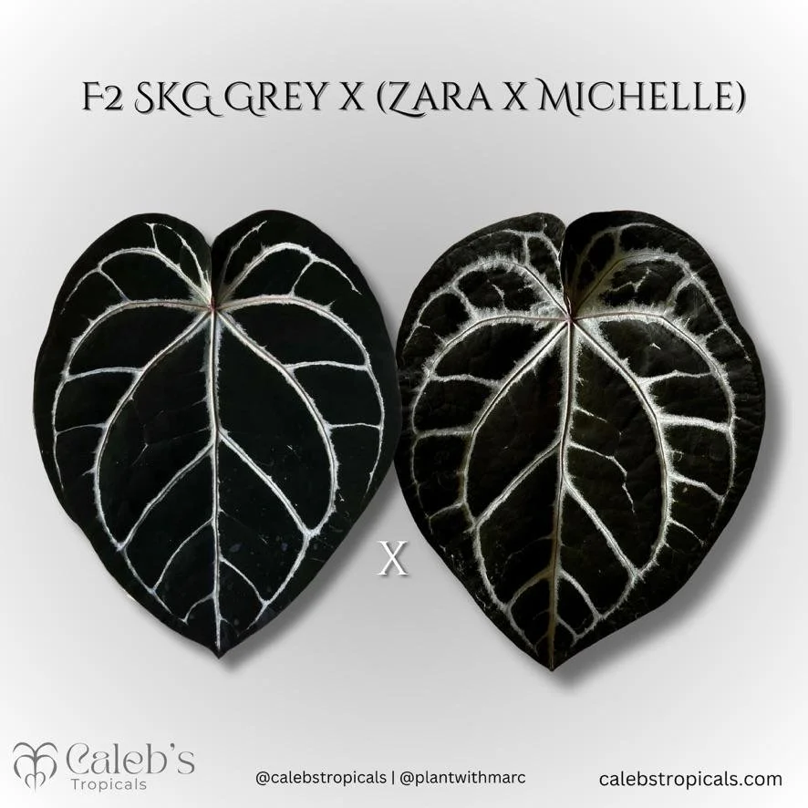 They have arrived!! The pollen donor is my glorious SKG Grey x (Zara x Michelle) that I grew from seed. Connor Burgal produced her. From the jump, she was the standout of the seedlings. Jet black leaves with insanely purple (almost black) emergents. I sold Marc (@plantwithmarc) the mother plant, a sibling to mine, as a seedling and immediately regretted it. I knew we would have to collab on making F2s, and here we are!